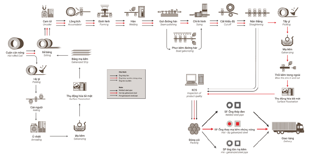 Quy trình chi tiết này đảm bảo các ống được bảo vệ khỏi ăn mòn và có lớp phủ kẽm đồng đều, bền bỉ, thích hợp cho các ứng dụng như đường ống dẫn gas, nước và hệ thống sưởi
